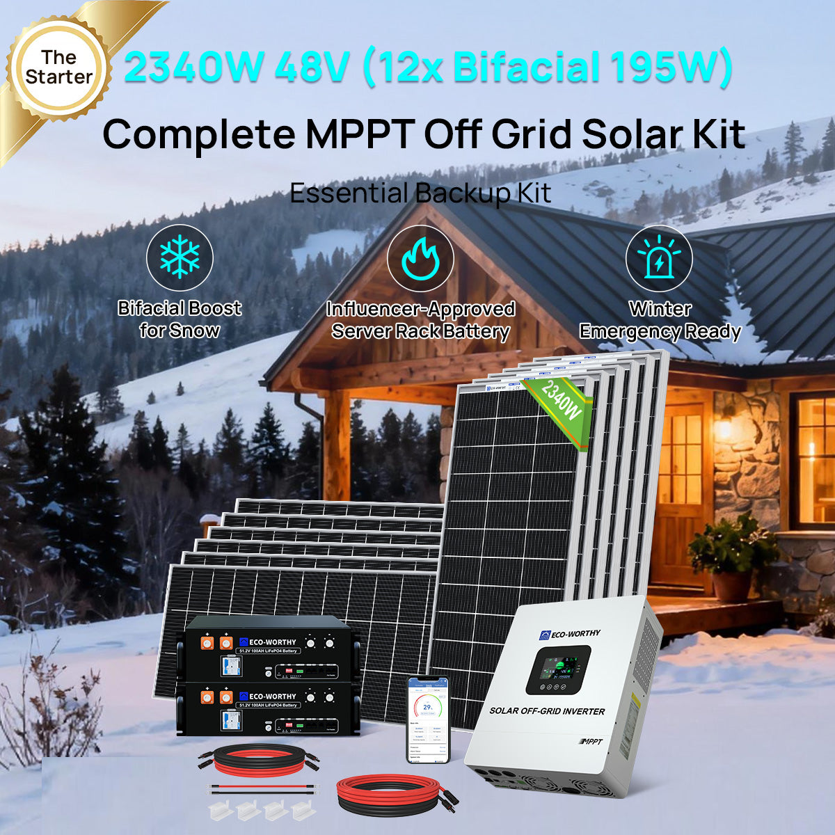 2340W 48V (12x Bifacial 195W) Complete MPPT Off Grid Solar Kit|5.12kWh Battery Capacity|120V AC Single Phase Output
