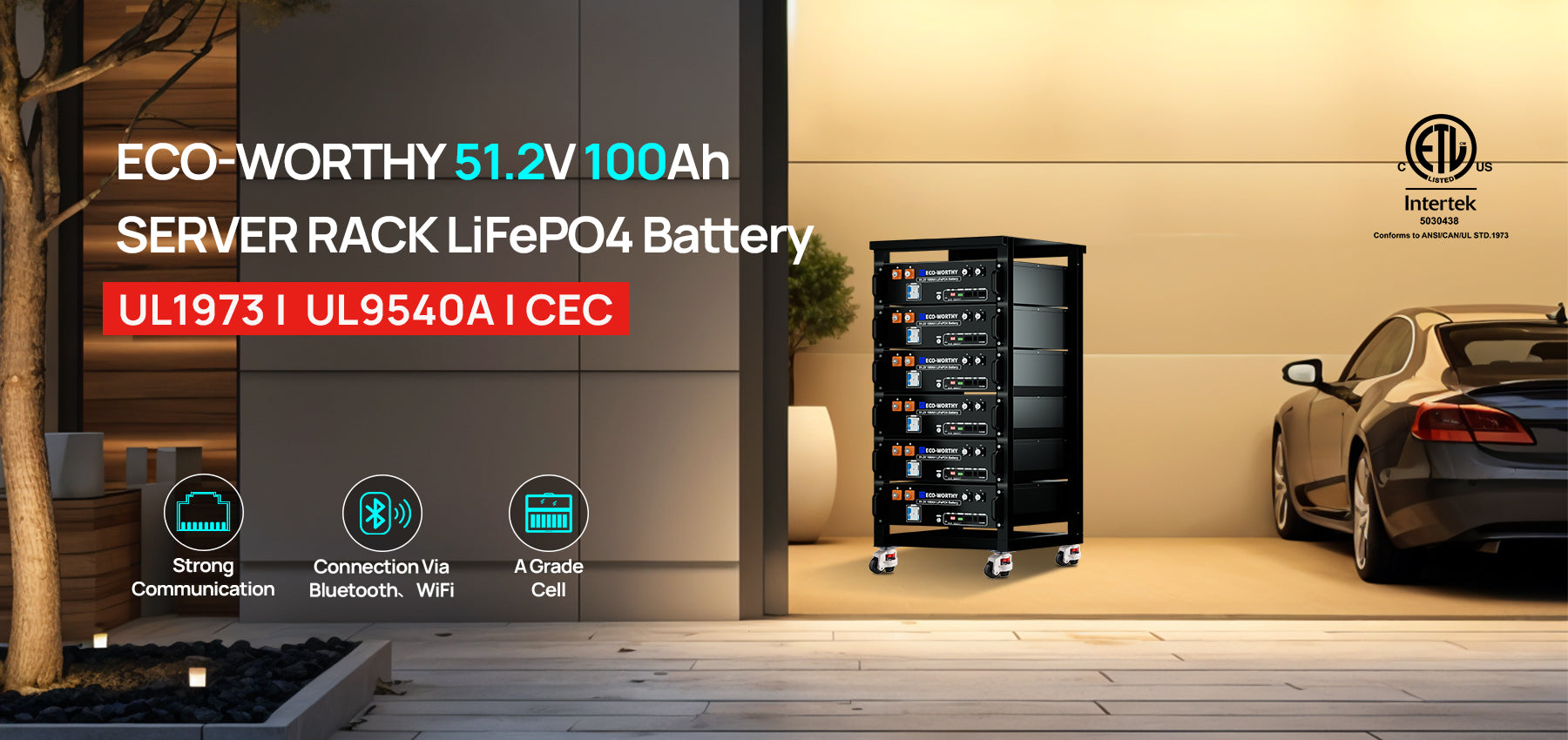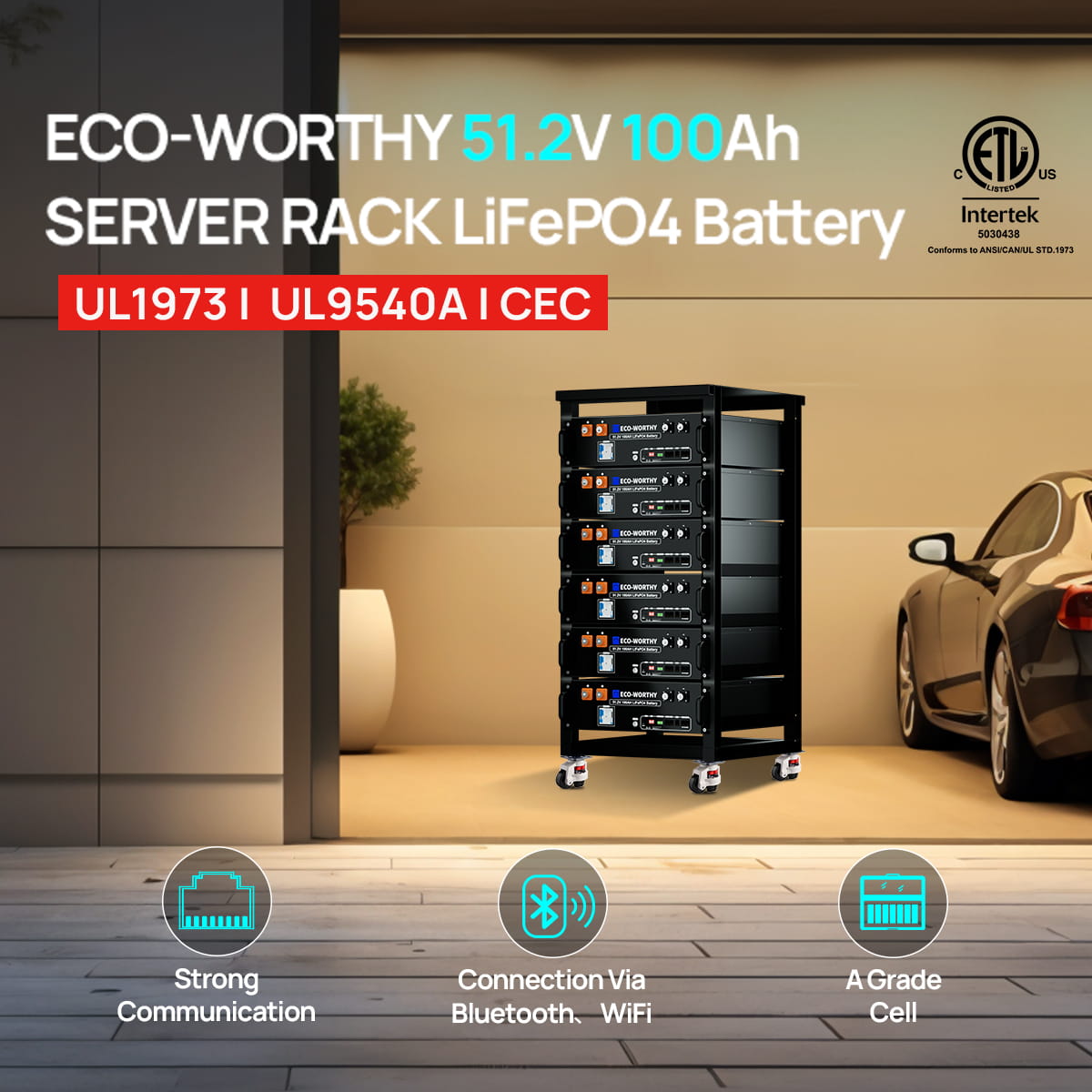 ECO-WORTHY 48V(51.2V) 100Ah LiFePO4 Server Rack Battery(V3) | 5.12kWh With Bluetooth & Wifi | UL1973 | UL9540A | CEC