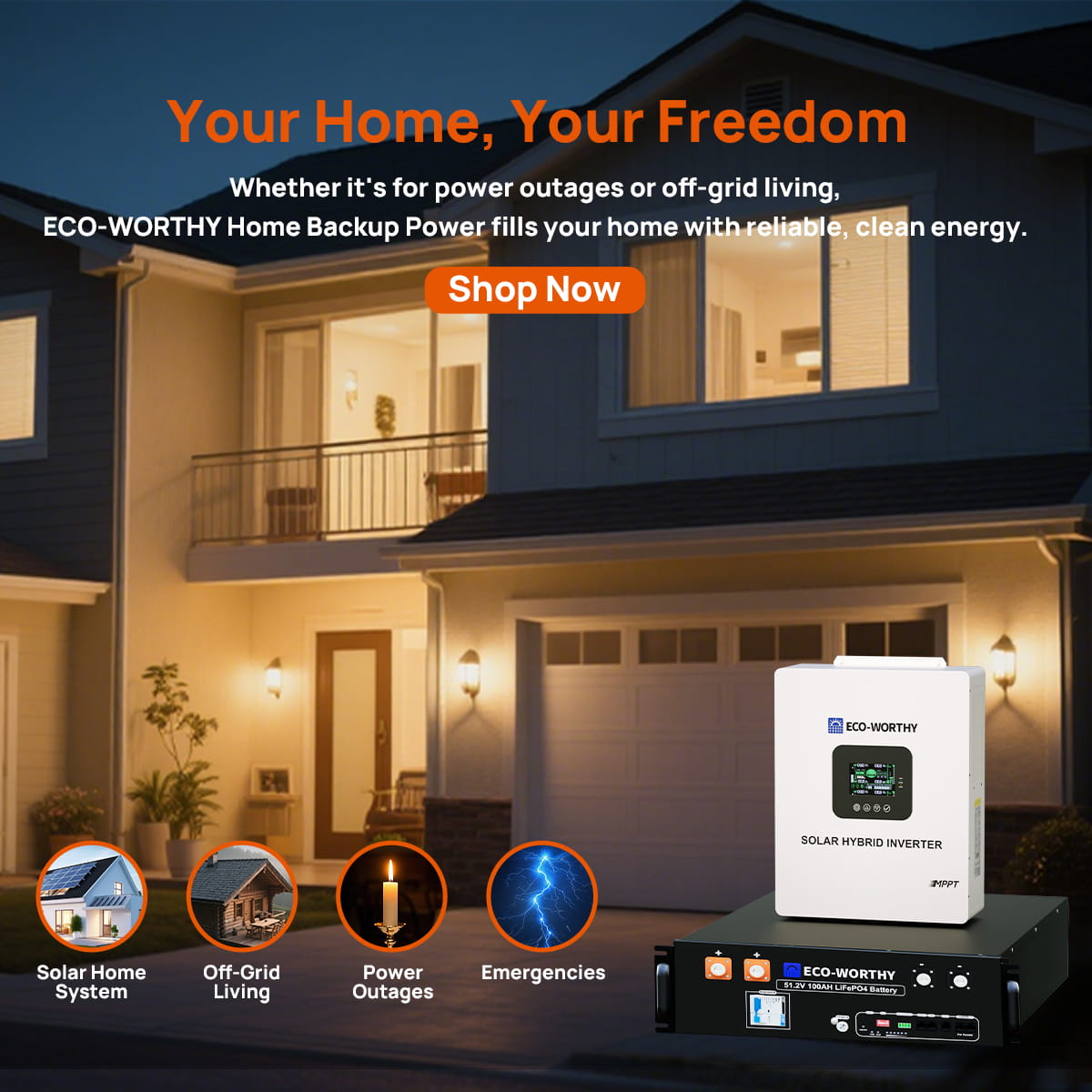 ECO-WORTHY 3.5KW Home Backup Power with 48V 100Ah LiFePO4 Battery and 3500W 48V Off-Grid Inverter