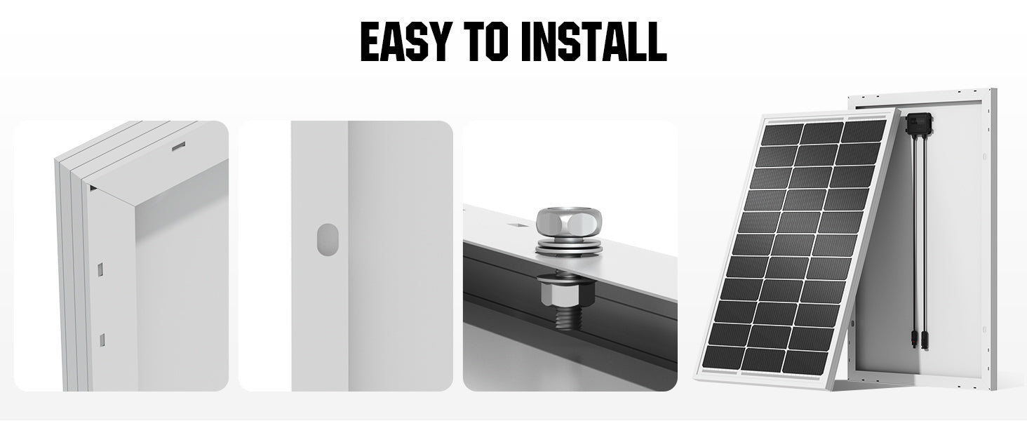 ·Easy to Install: Plug & play designed Connector in the cables for quick installation and pre-drilled holes on the back of the panel allow for fast mounting it on the roof or bracket.
