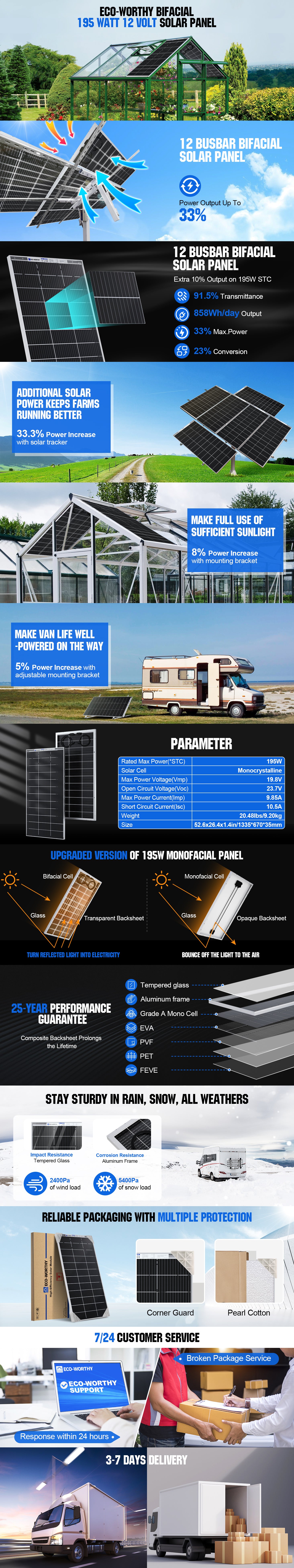·After-sale Services: As a professional solar system manufacturer, whenever you encounter any problems, ECO-WORTHY Solar Panels Service will actively provide you with professional off grid system solutions within 24hrs.