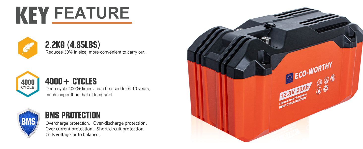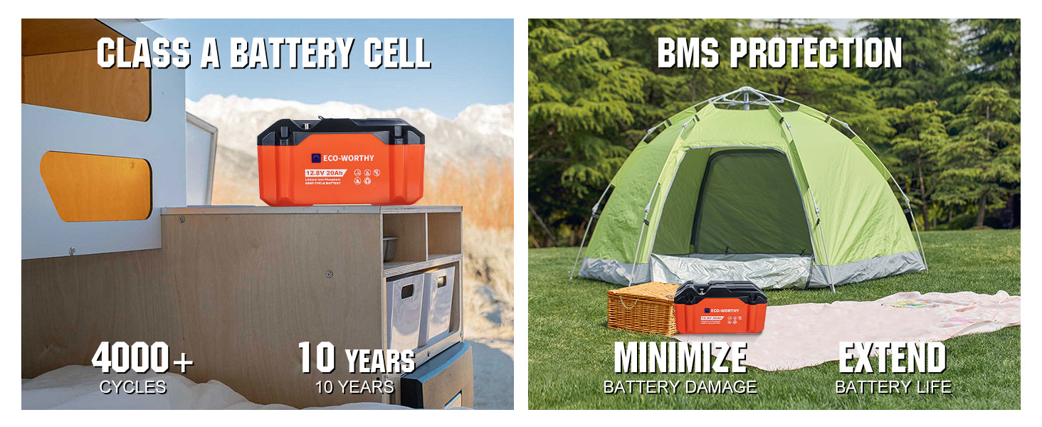 ·Comprehensive Protection: Built-in BMS protects the battery from overcharge, deep discharge, overload, overheat, short circuit and keeps battery cell balance.The warranty of the lithium battery is 3 years.