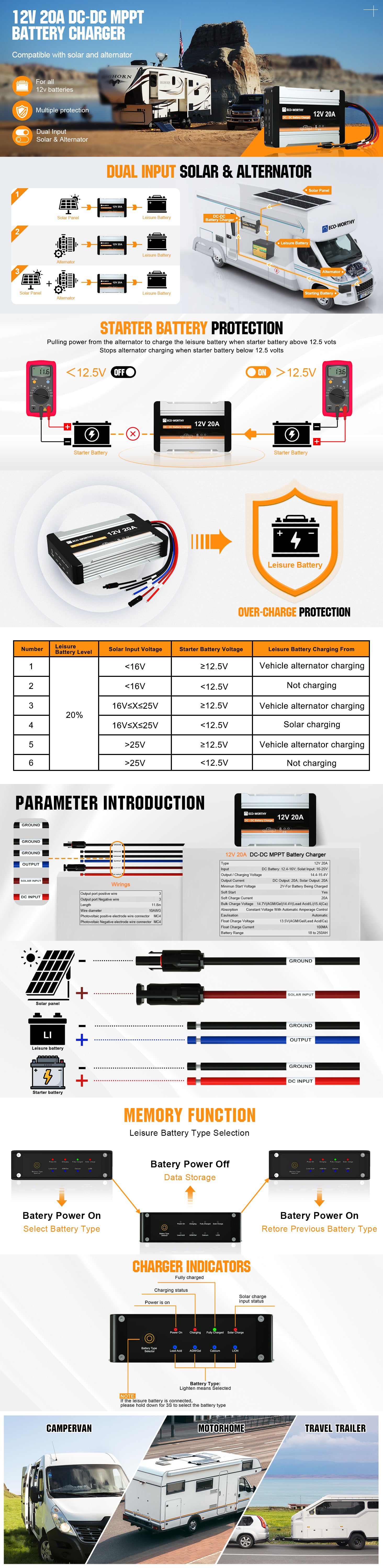12V 20A & 40A DC to DC Charger On-Board MPPT Battery Charger
