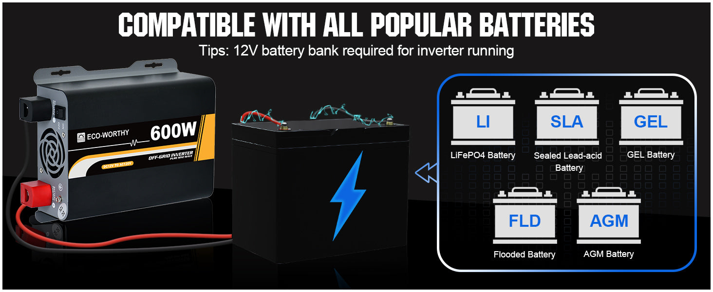 ·Switch Battery: Can be switched to Lead-acid Battery or Lithium Battery, extend your battery life & improve inverter efficiency.