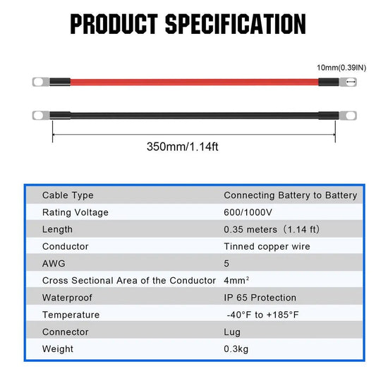 6AWG (16mm²) 13 Inch Battery Interconnect Cable