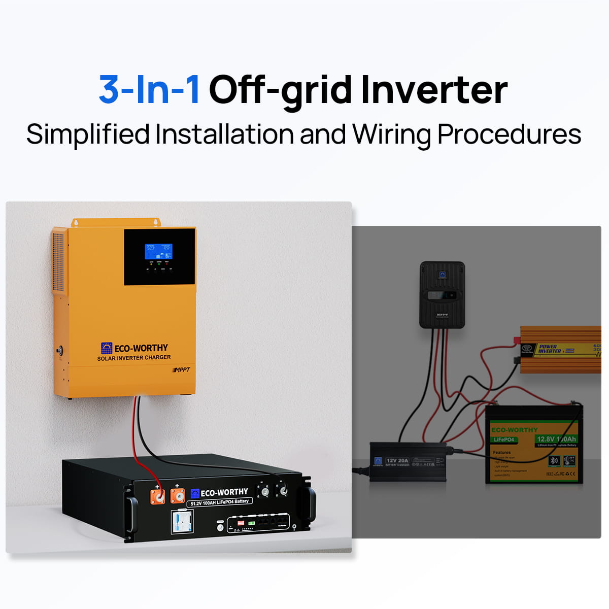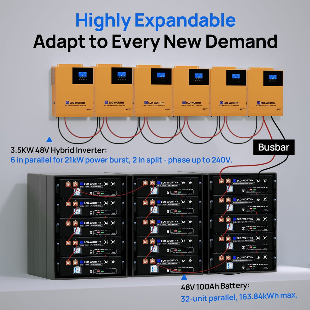 ECO-WORTHY 3.5KW Home Backup Power with 48V 100Ah LiFePO4 Battery and 3500W 48V Off-Grid Inverter