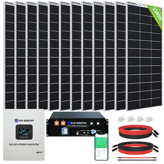2340W 48V (12x Bifacial 195W) Complete MPPT Off Grid Solar Kit|5.12kWh Battery Capacity|120V/240V AC Split Phase Output