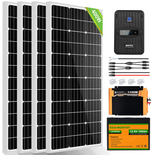 400W 12V (4x100W) Complete Off Grid Solar Kit