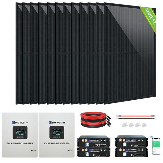 ECO-WORTHY 5KW Home Backup Power Bundle with 48V 100Ah LiFePO4 Battery and 5000W 48V All in One Inverter