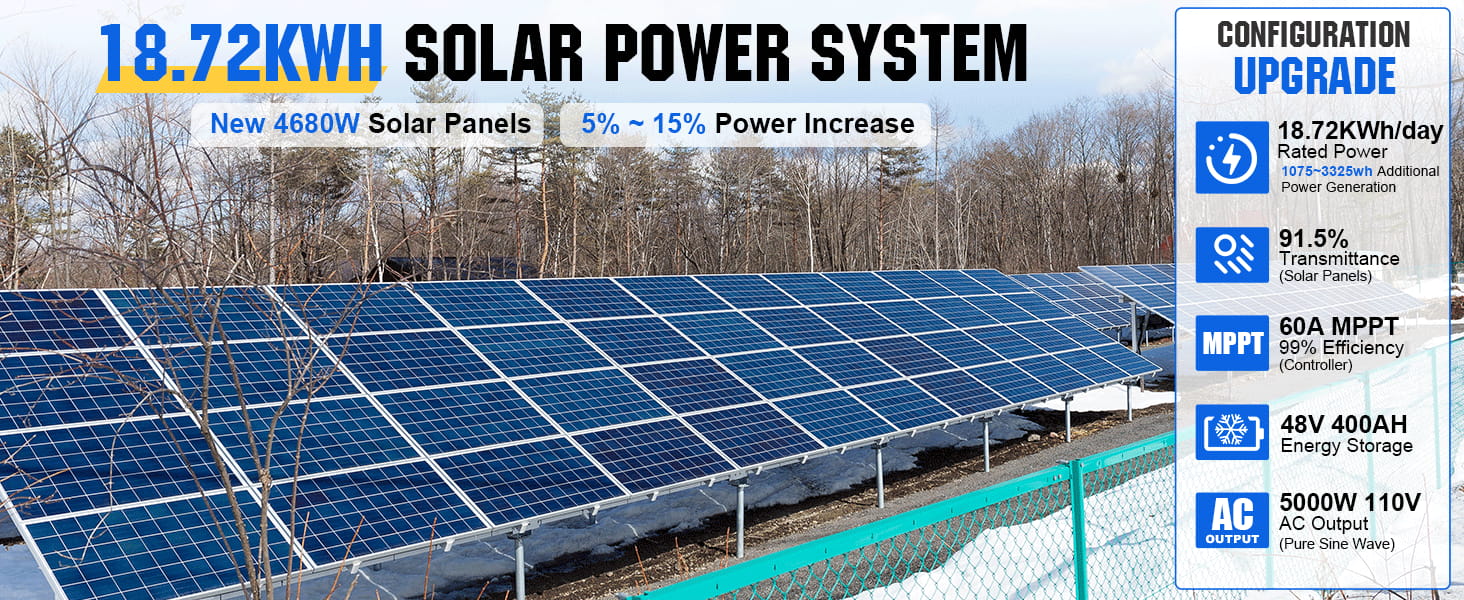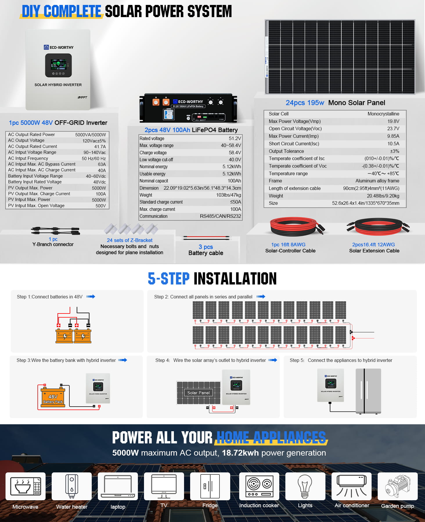 4680W 48V (24x Bifacial 195W) Complete Off Grid Solar Kit | 20.48kWh Battery Capacity | 120VAC/240VAC 5000W Split Phase Output