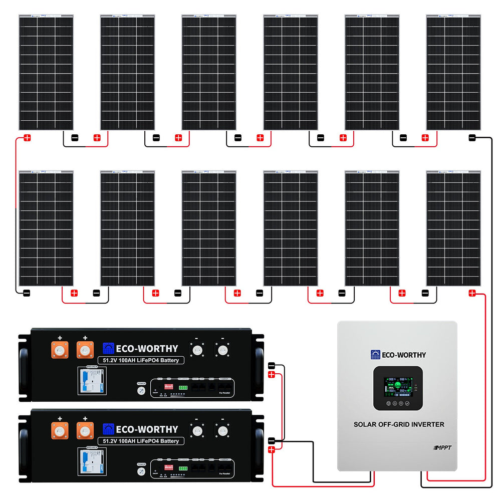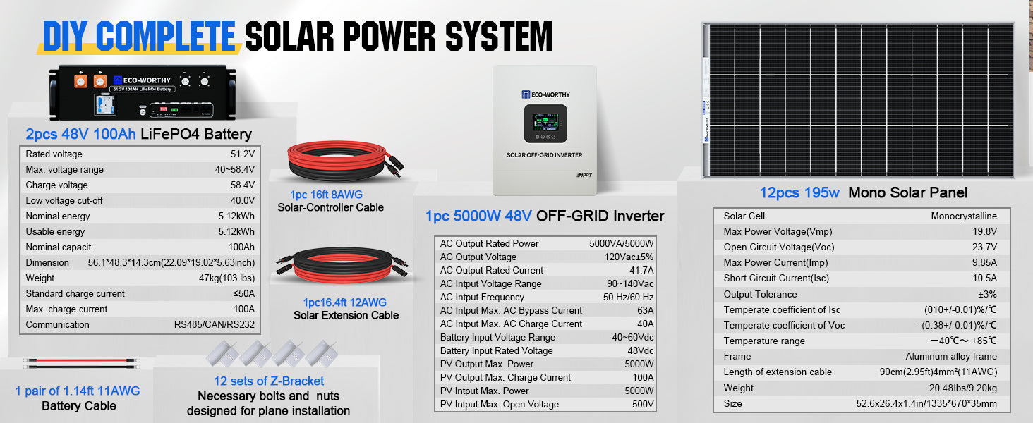 2340W 48V (12x Bifacial 195W) Complete MPPT Off Grid Solar Kit|5.12kWh Battery Capacity|120V/240V AC Split Phase Output