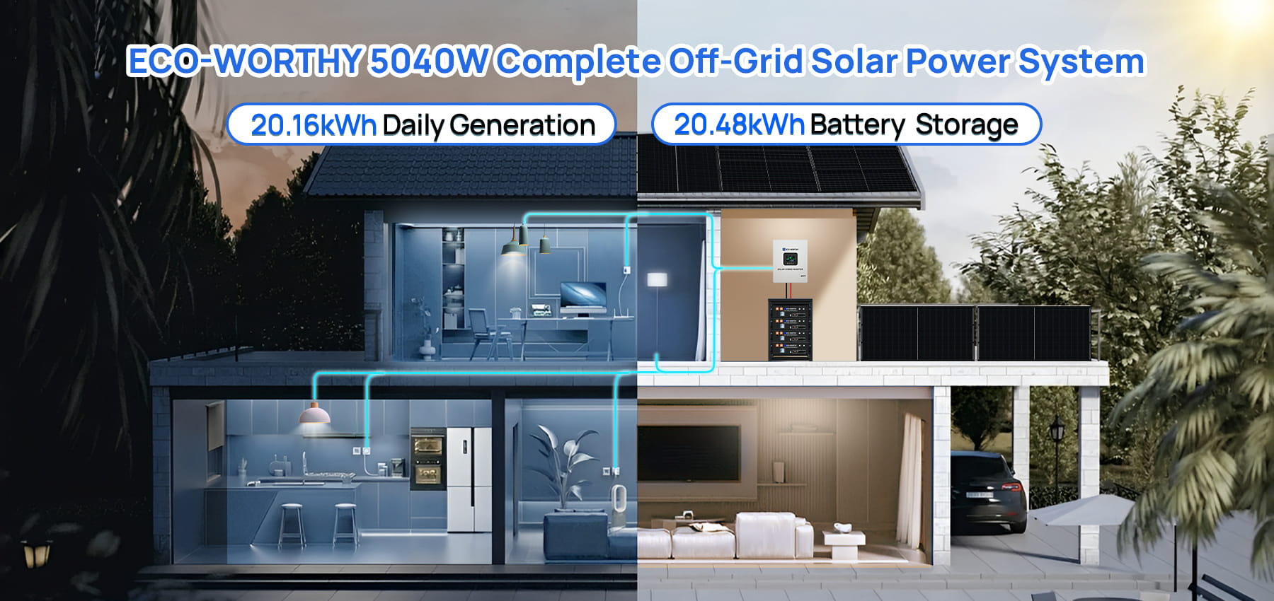 ECO-WORTHY 5.12kWh Home Backup Power with 48V 100Ah LiFePO4 Battery and 5000W 48V All in One Inverter